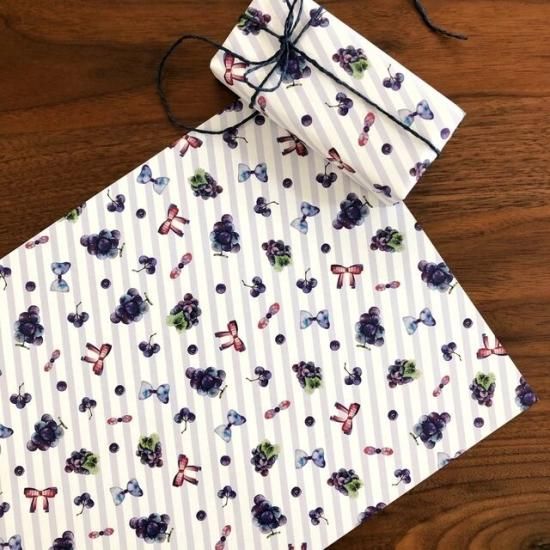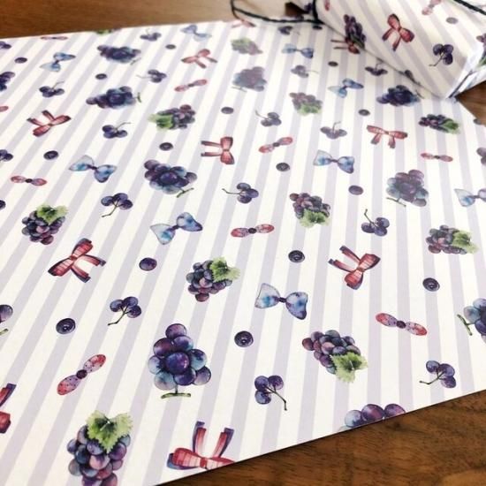 ブドウとブドウカラーのリボンを水彩で描いたラッピングペーパーです。