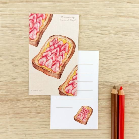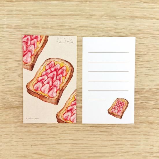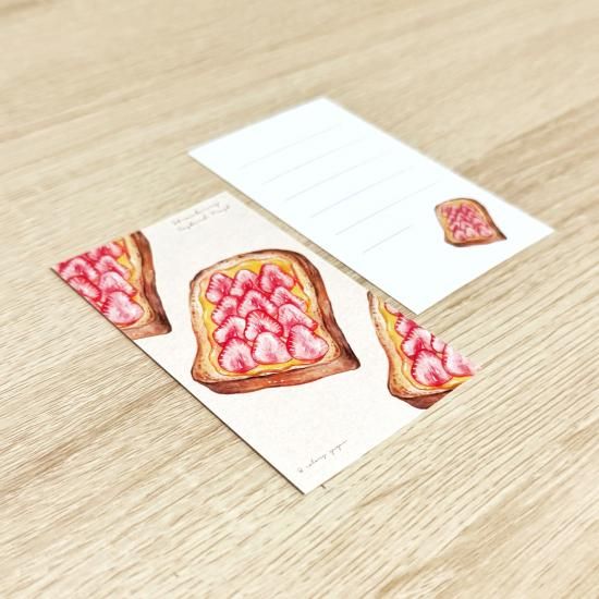 透明水彩で描いたいちごトーストをメッセージカードにしました。