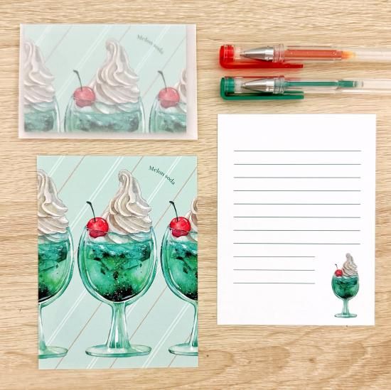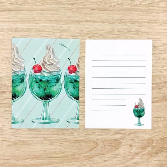 透明水彩で描いたメロンソーダをミニレターにしました。